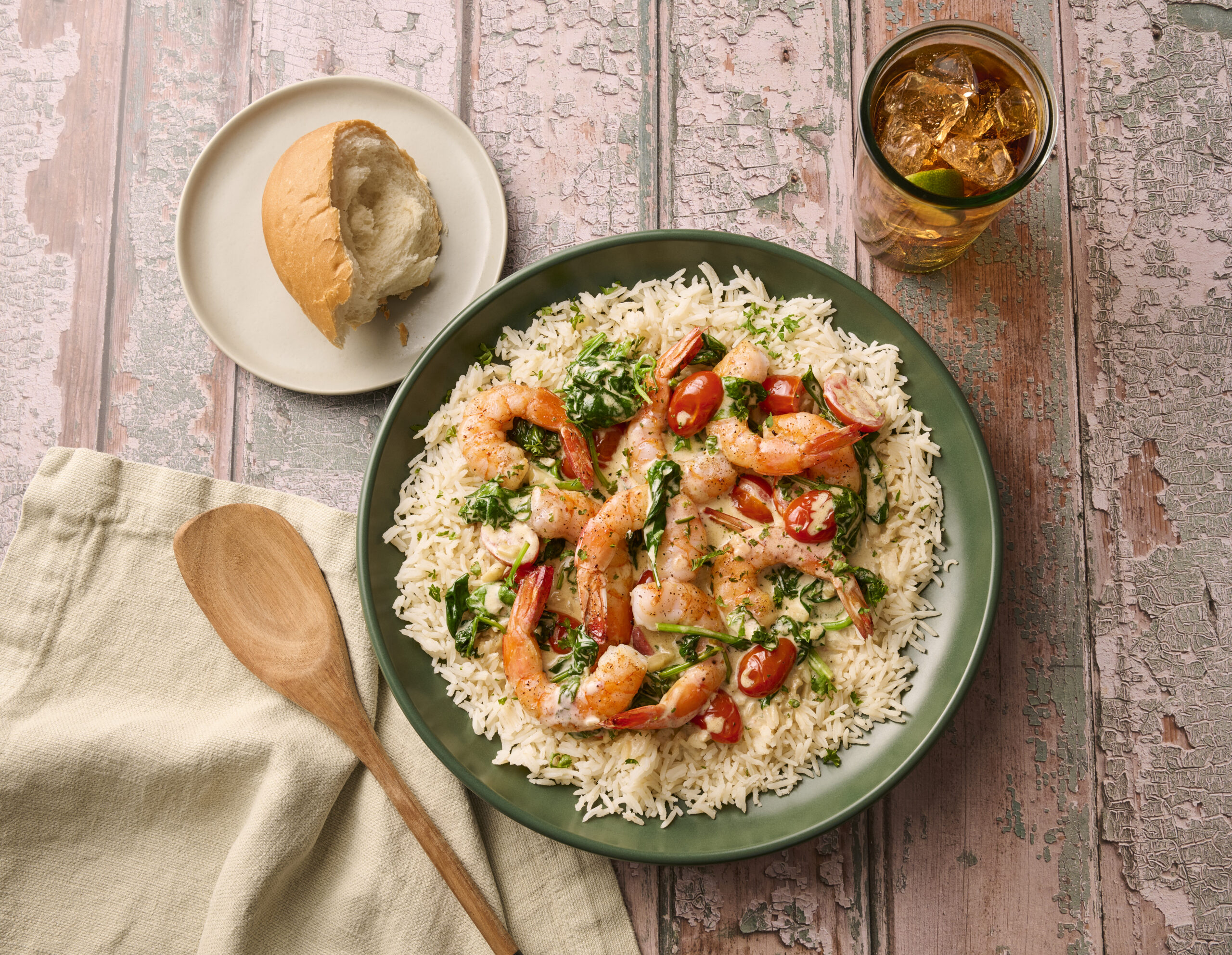 Juicy Wild Caught Texas Shrimp in a silky garlic-butter cream sauce with spinach, tomatoes, and parmesan. A rich Italian-inspired dish that’s delicious on its own or spooned over pasta or rice.